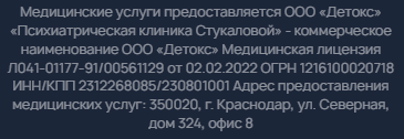 Узнать об услугах частного центра наркологической помощи в Павловске или вызвать врача по любому адресу можно 24/7 по телефону: ☎️+78125078144. Звоните, мы работаем по официальной лицензии, гарантируя применение проверенных методик и сертифицированных препаратов.